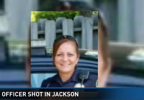 A Jackson (GA) Police Department officer is recovering at home after being shot in the vest early Tuesday morning while she was on patrol.