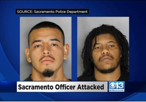 A Sacramento, CA, Police officer is recovering after investigators say he was ambushed outside a hospital. Police have arrested two men in the case - one for the beating, and one for videotaping it.
