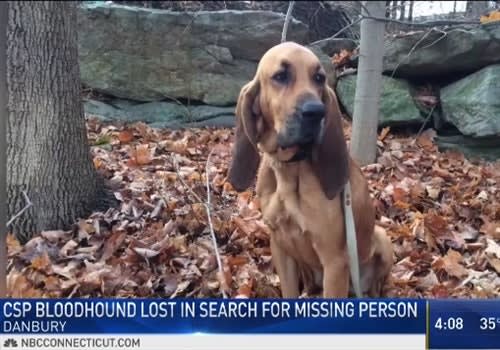 A Connecticut state police bloodhound named Texas joined the search for a man who was reported missing in Danbury. The man was found but now police and firefighters are looking for the search dog.
