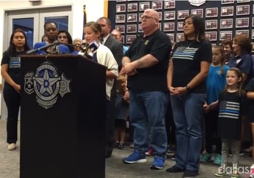 At a news conference Thursday at the Dallas Police Association headquarters, the spouses and children of officers said they worry about their family members in uniform. They said police deserve more funding after the shooting of headquarters in June and in the midst of what they said was an anti-police climate promoted by "the national media."