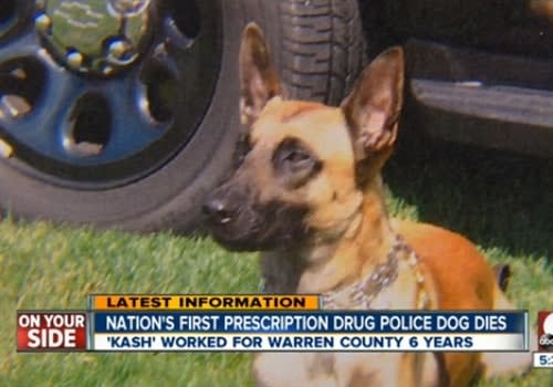 K-9 Kash, a 6-year-old Belgian Malinois, was diagnosed with cancer late last year but continued to work until July. He was the first in the United States certified to sniff out prescription drugs. Kash also could detect other narcotics and track down suspects, reports WCPO .