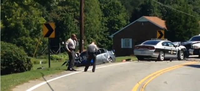 Officials say the chase began in Stokes County at about 7:40 a.m. when the driver failed to pull over for an expired registration violation, and led to the crash, which occurred at 7:45 a.m. in Forsyth County.