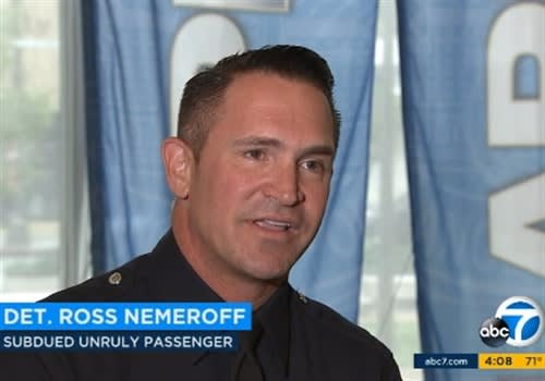 It was supposed to be a relaxing vacation to Honolulu for off-duty LAPD Detective Ross Nemeroff on May 19, but about two hours into the flight, a 25-year-old Turkish national began screaming and pounding his fists into the plane's walls, reports KABC .
