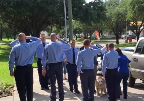 Firefighters in the Houston suburb learned of Corliss’ sad decision Sunday night and paid tribute to their canine friend outside the animal hospital.