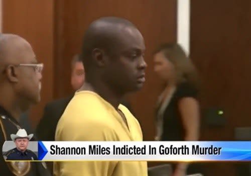 Prosecutors said Shannon Miles is accused of shooting Harris County, TX, sheriff's deputy Darren Goforth in retaliation for being a law enforcement officer. Miles was indicted Monday by a Harris County grand jury on a capital murder charge.