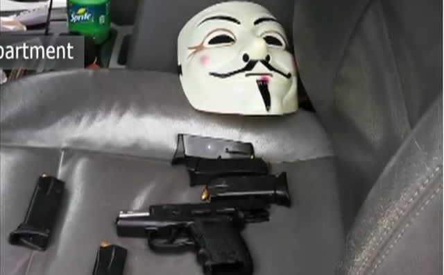 According to police sources, Adan Salazar, 22, drove up to the security checkpoint, where officers stopped to talk to him. Salazar wore a Guy Fawkes mask seen in the film and comic book "V for Vendetta," which has also been worn as a symbol for online hacktivist group Anonymous.