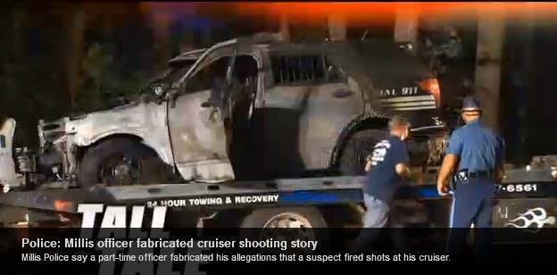 Millis, Mass., police say a part-time officer fabricated his allegations that a suspect fired shots at his cruiser .