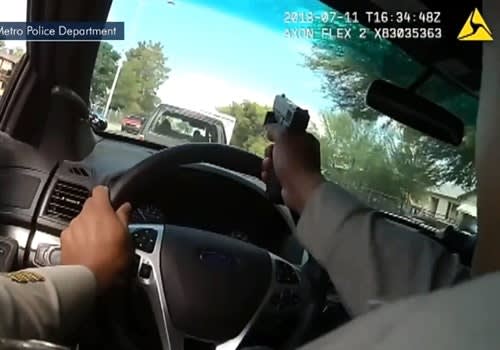 Las Vegas Metro Police released body camera footage of a police pursuit of two suspects who allegedly fled after a July 11 traffic stop conducted by cops investigating the murder of a man near a car wash.