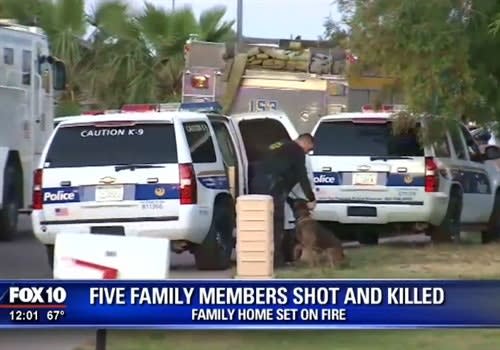 Sgt. Trent Crump said that dispatchers received calls from the victims inside. When they arrived they found the home on fire and heard shots being fired inside. Officers used equipment from the fire department and knocked down some of the fire to help rescue some victims from the home.
