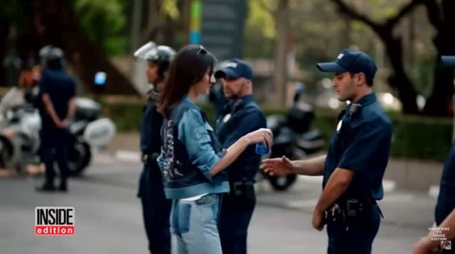 The commercial shows Jenner ditching a modeling gig as protesters march outside. Armed with a can of Pepsi, she joins the marchers, and hands a police officer the soda in a gesture of goodwill, bringing the demonstration to a peaceful end, Inside Edition reports.