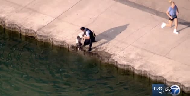 A dog fell into Lake Michigan Tuesday morning and struggled to get back up onto land. Luckily, a Chicago police officer got there just in time.