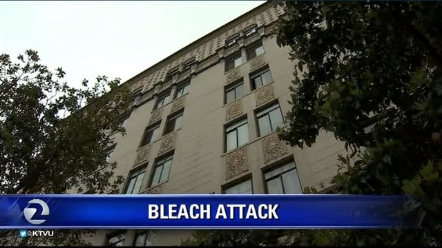 The officer was responding to a call about a dog bite shortly after 11 p.m. in the 100 block of Hyde Street when the suspect, a 47-year-old woman, allegedly poured bleach from a sixth-story window, police told KTVU TV .