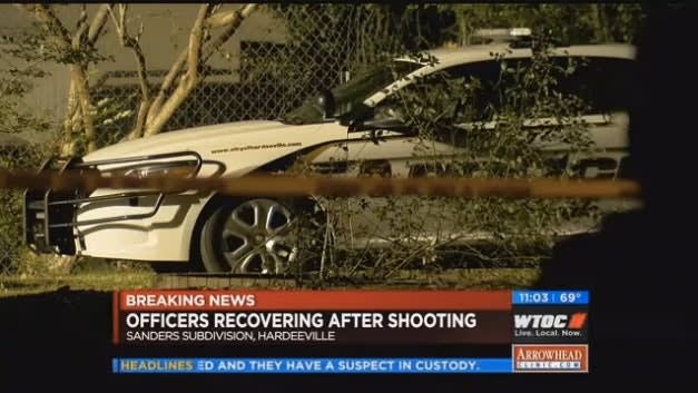 Two South Carolina officers were shot and wounded Thursday evening responding to a domestic dispute in Hardeeville. They returned fire and the suspect was killed.