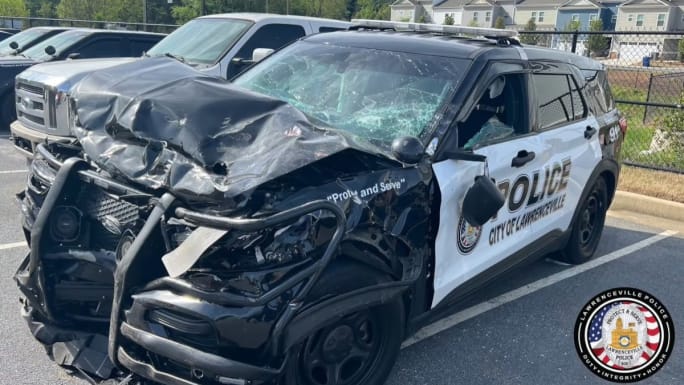 Lawrenceville police (GA) released dashcam and body-worn camera video of when pursuit suspect struck a patrol SUV.