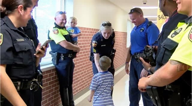 The officers showed up to walk 4-year-old Jackson Scherlen into Coronado Elementary to wish him luck and hug him goodbye.