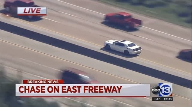 Weaving in and out of lanes and riding on the shoulder to avoid other vehicles, the Hellcat reached speeds of well over 100 mph during the pursuit, which began in Houston and ended in Jefferson County.