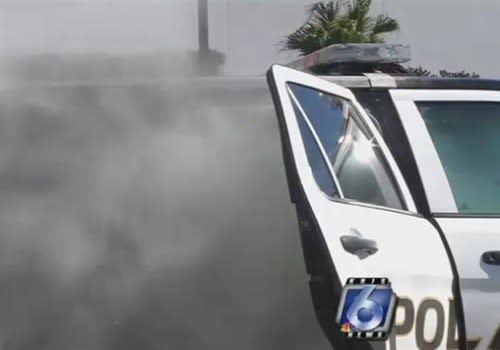 Officers found the suspect and placed him in a police cruiser, and he allegedly set the police cruiser on fire. The suspect was then put into another police unit, and he was able to set that unit on fire while officers were addressing the media about the situation.