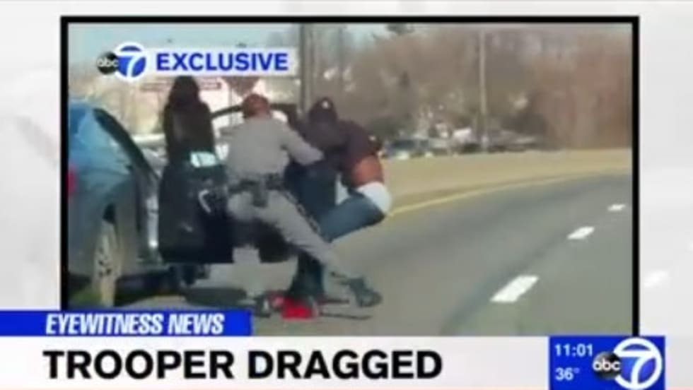 A New York state trooper attempting to make a traffic stop was dragged and injured by a driver on Long Island Wednesday afternoon.