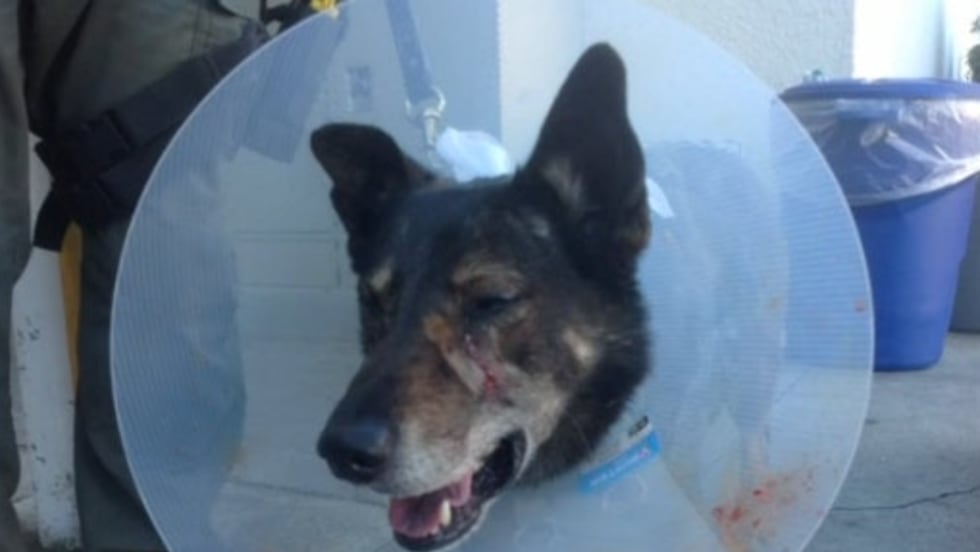 A short standoff in Rancho Santa Fe, CA, early Saturday ended with a man being shot by deputies after he stabbed a K9 and forced his way into a man's apartment, taking him hostage.