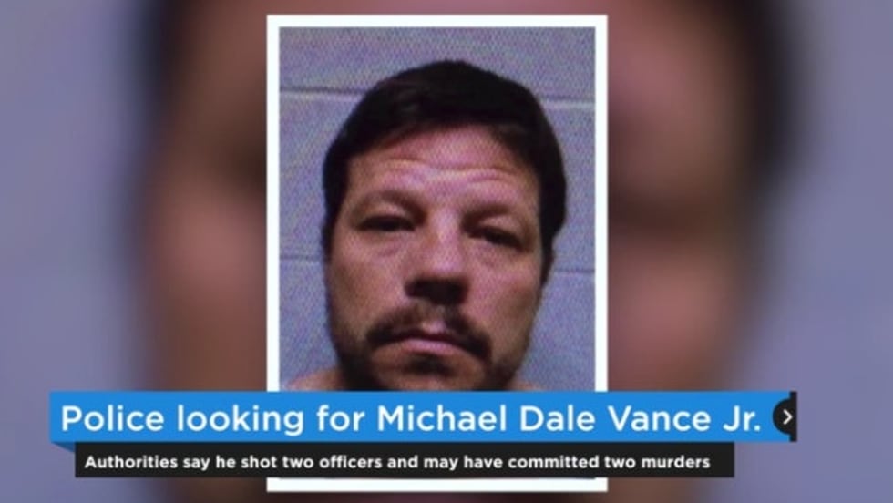 A manhunt continues Monday for a man sought in the deaths of his aunt and uncle and the wounding of two Wellston, OK, police officers.