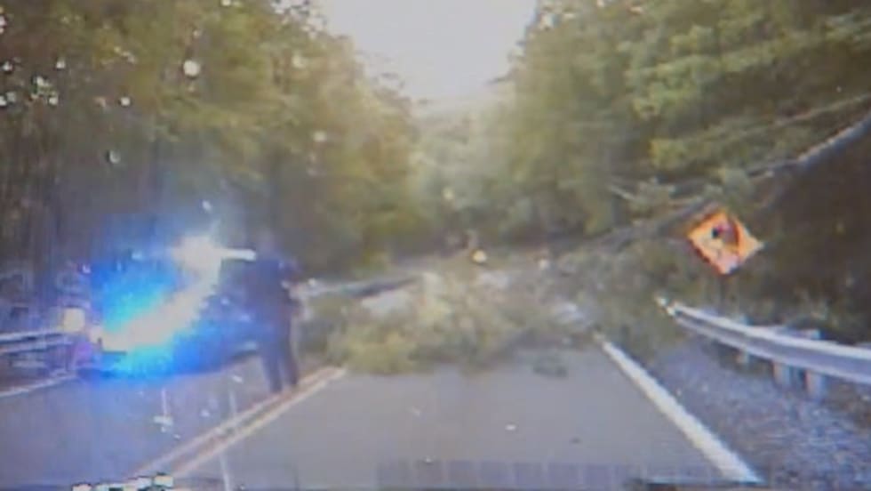 A New Jersey police officer who responded to a call of a large branch blocking part of the road ended up being struck by a falling tree in Ringwood Friday morning.