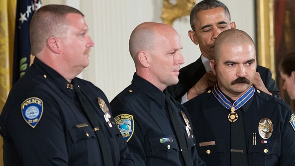 President Obama presented 13 law enforcement officers with the Public Safety Medal of Valor on Monday. All of the officers were recognized for showing exceptional courage despite threats to their personal safety.