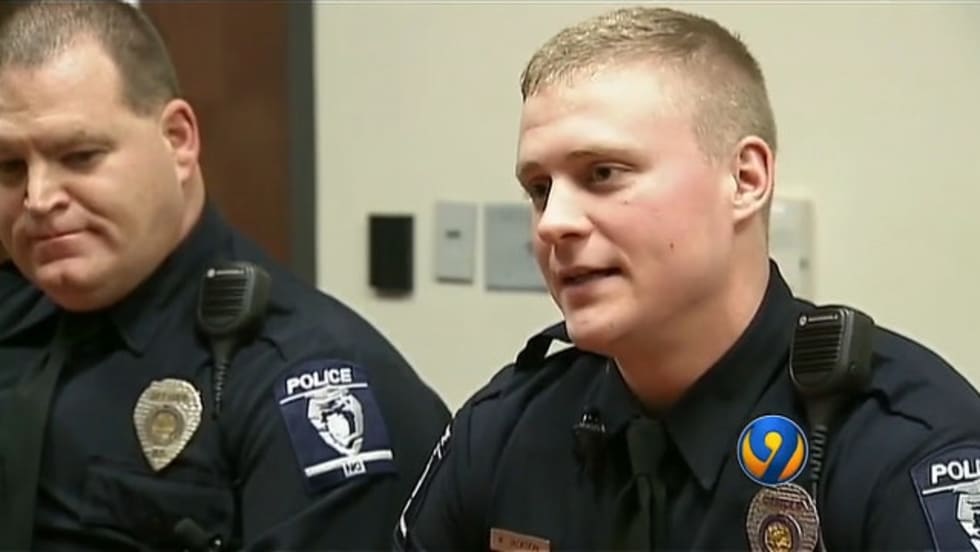 Officer Jordan Wenslow of the Gwinnett County (GA) Police Department was beaten, bleeding, and dizzy when he arrested a fleeing burglary suspect Wednesday.