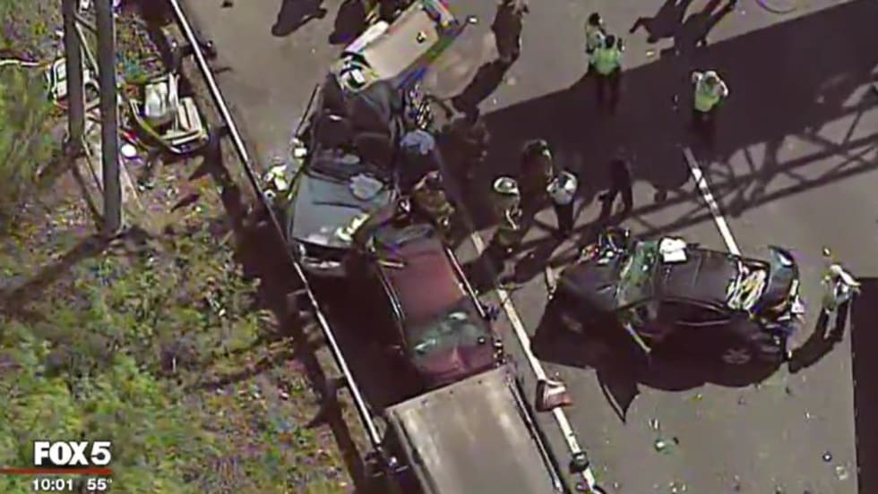 A Maryland State Trooper responding to a crash along the Capital Beltway on Thursday afternoon was struck while he was in his patrol car by another vehicle, causing the trooper to be trapped inside it.
