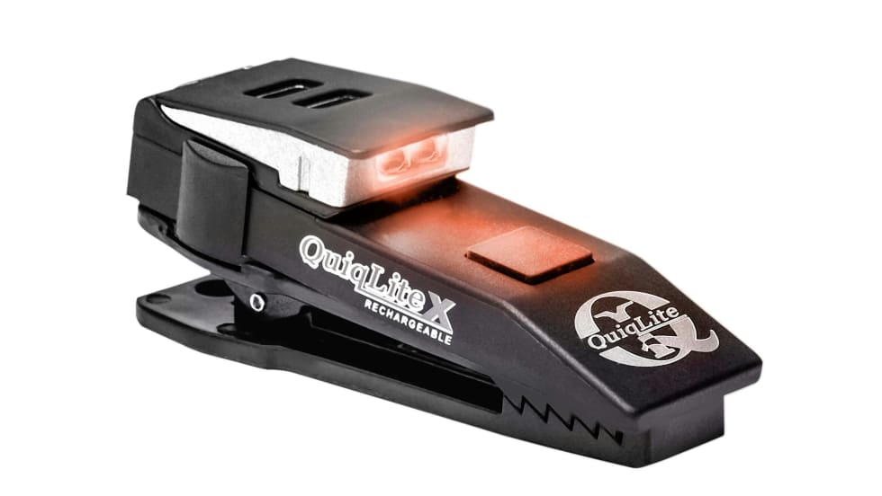 Invented by a police officer to increase convenience and safety on the job, the QuiqliteX Rechargeable Red/White Light is a hands-free, concealed LED light source designed to clip on the inside of your uniform's shirt pocket or attach to MOLLE.