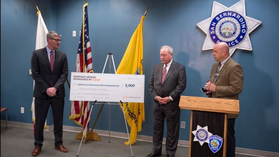 For its resourceful police work and brave response to the events on Dec. 2, the San Bernardino Police Department was honored with an Everyday Heroes award, sponsored by Thomson Reuters, at a ceremony earlier this week.