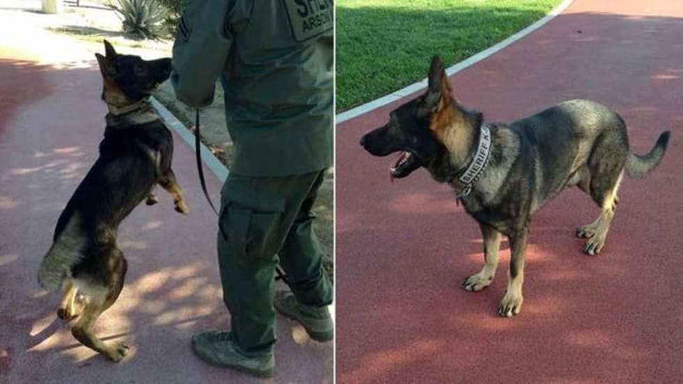 A San Bernardino County sheriff's detective lost his finger during an attempt to save his K9 partner, trained in explosive detection and tracking, who died while searching a warehouse, officials said Friday.