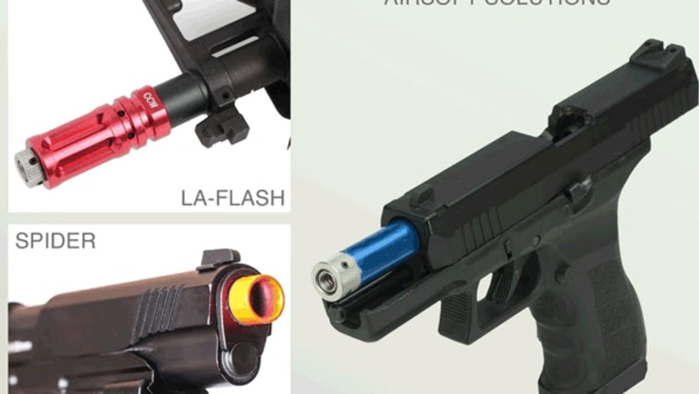 Affordability and government-agency-level firearm training were what Laser Ammo had in mind when it developed its recent line of Airsoft solutions: the SPIDER adapter; the newly designed-for-2016 LA-FLASH suppressor adapter; and the R.E.A.L. (Recoil Enabled Airsoft Laser).