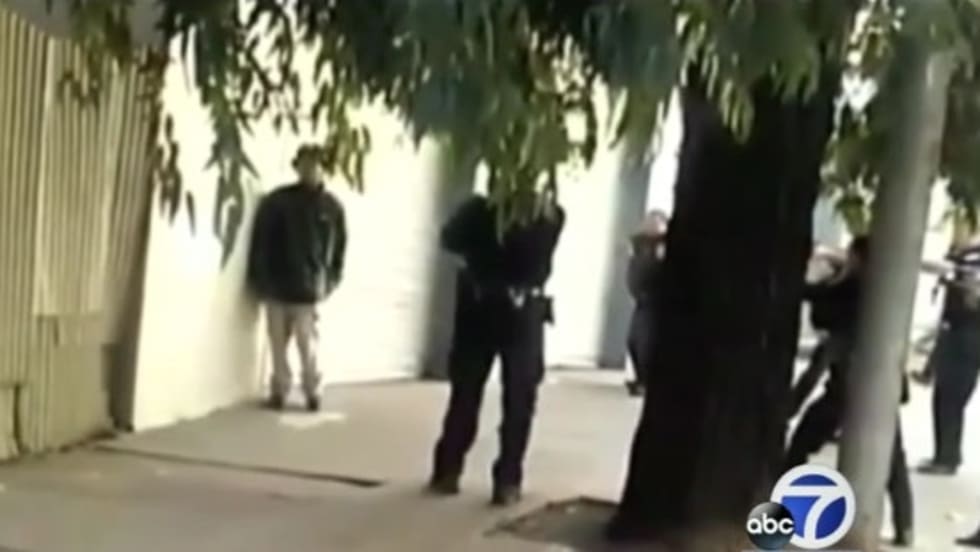 The blurry dash-cam video shows officers running after Johnson. As he runs off frame, Officer Hernandez raises his arms and flashes come from his gun.