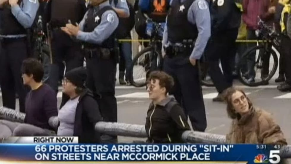 Nineteen adult men and 47 adult women were arrested on misdemeanor charges of obstruction of traffic by a non-motorist, according to Chicago Police News Affairs.
