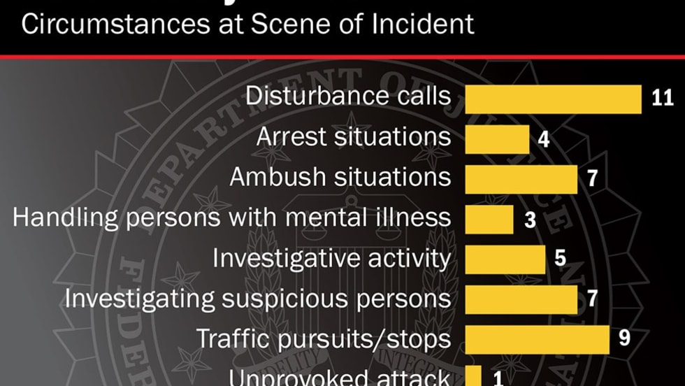 The felonious deaths of the 51 officers—all males—occurred in 24 states and Puerto Rico. The figure represents a significant increase over the number that occurred in 2013, when 27 officers were killed, but is lower than the numbers from 2009 (56 officers) and 2005 (55 officers).