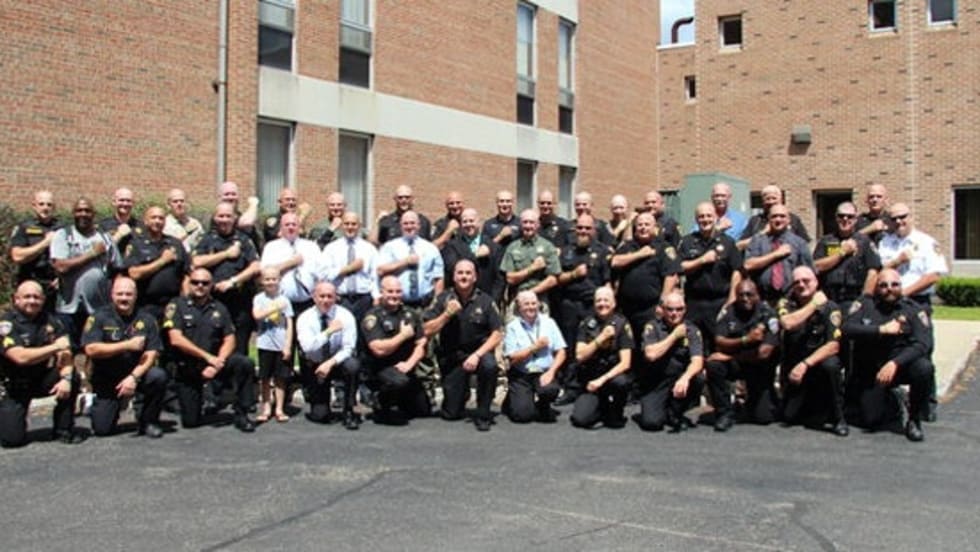 About 50 members of the Cattaraugus County Sheriff's Office, including two women, shaved their heads for Nichols, who has leukemia.