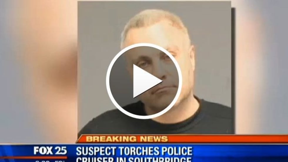 Southbridge, Mass., Police say a man walked up to an unoccupied cruiser at the police station, dumped gasoline on it, and lit then it on fire late Tuesday night. The spectacle was captured on cellphone video.