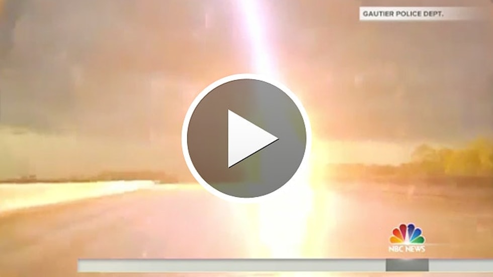 Gautier police Sgt. Mark Rodriguez was driving his cruiser through stormy weather last Tuesday morning when lightning struck just feet in front of him. Dramatic footage from his patrol car's dash-cam shows a flash exploding from the cloudy sky, right in front of the car as it drove across a bridge in Jackson County.