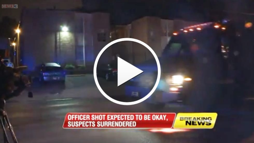 A Northern Oklahoma police officer was shot in the head Thursday evening during a high-speed pursuit that continued across the Kansas state line. As of Friday morning three suspects were in custody.