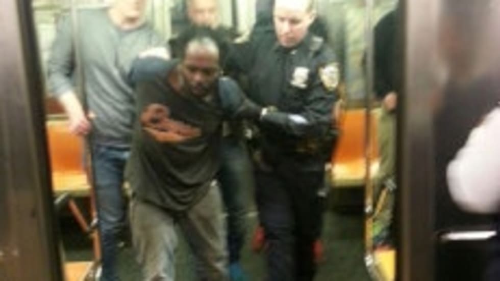 Four Swedish police officers took a break from their New York vacation to answer the call of duty Wednesday, breaking up an out-of-control fight between two homeless men on a Manhattan subway train.