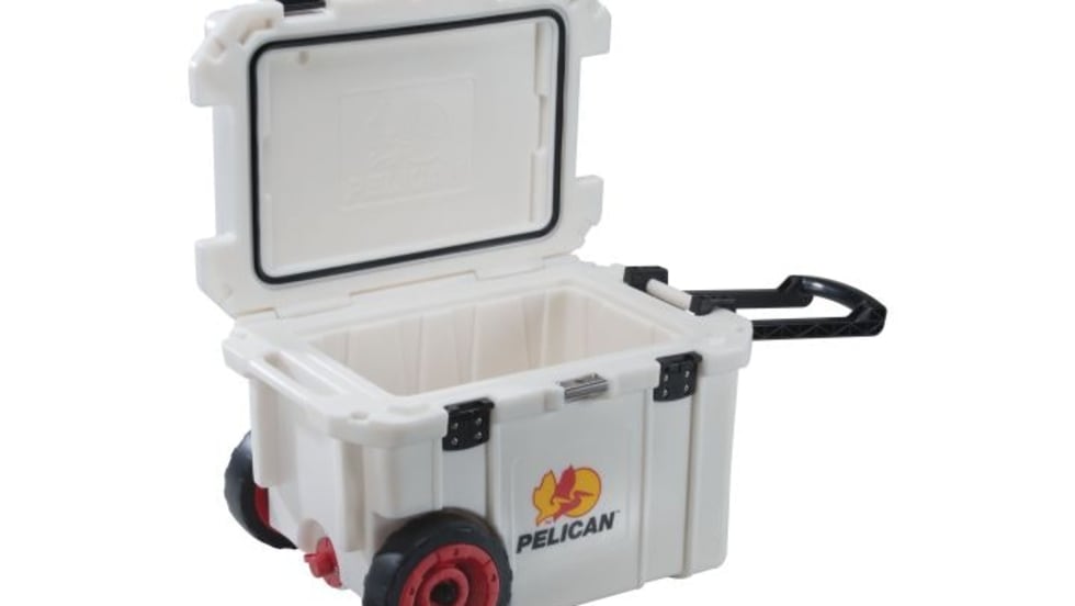 Designed to traverse tough terrain with ease, the Pelican ProGear 45QW Elite Wheeled Cooler has 8-inch heavy-duty wheels with an extended pull handle.