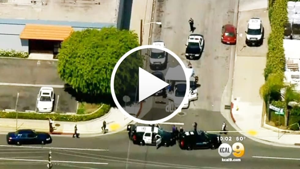 A Southern California woman in fear for her life was shot to death in front of a police officer, who fired back, killing the shooter, authorities said Wednesday.