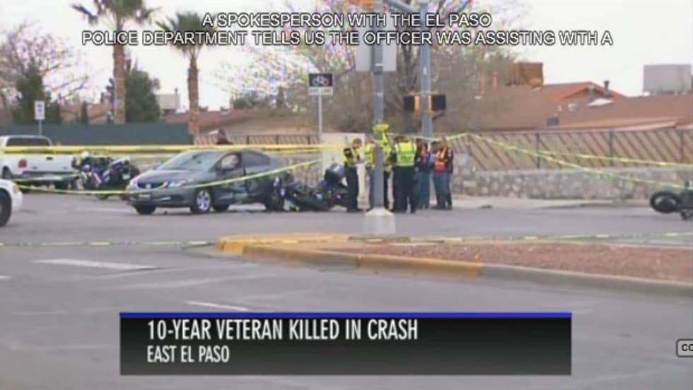 An off-duty El Paso police motorcycle officer escorting a funeral procession was killed Wednesday in a collision with a car at an East Side intersection.