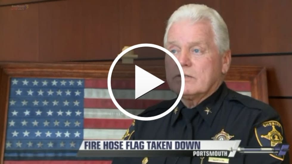 Sheriff Watson said his agency got the American flag display as a gift from members of the Portsmouth Fire Department a few weeks ago. It’s made of old fire hoses with a sign beneath it that reads, “A Tribute to Public Safety.”