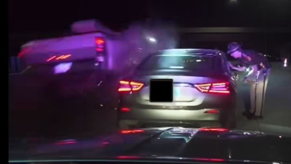 Police video shows a fleeing truck strike a GA police vehicle and the officer's quick actions after the impact as he took care of a recruit who was with him.