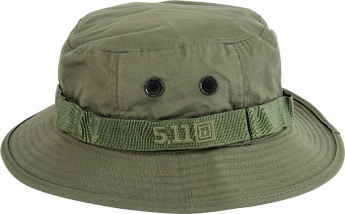 The 5.11 Boonie Hat is made of a lightweight yet durable poly-cotton TDU ripstop fabric with a Teflon finish, and features ventilation eyelets and a wicking sweatband to help you keep a cool head as the heat index rises. Feature details include an inside foam band with wicking jersey fabrication, sturdy yet flexible four-panel construction, and a Teflon finish. www.511tactical.com/5-11-boonie-hat.html