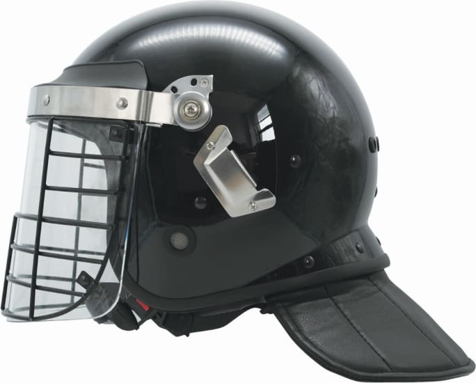 EDI-USA’s Terminator riot helmet is designed to be strong and resist tough riot threats faced by police officers, but also be lightweight and very mobile. The steel face cage in front also helps to protect officers against higher impact threats and is compatible with most gas mask models. This is the highest level of non-ballistic head protection manufactured by EDI-USA to protect police officers during riot operations. Available in multiple colors. http://ExecDefense.com