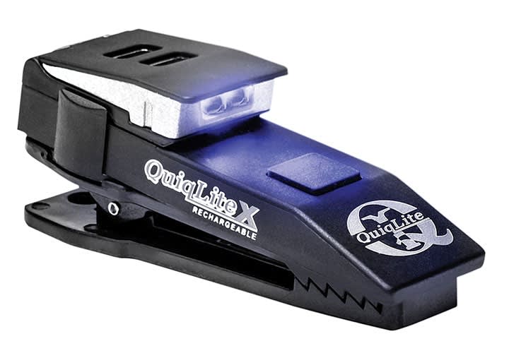 QuiqLite ( www.quiqlite.com ) makes small hands-free lights designed to clip to a uniform pocket or MOLLE webbing. The QuiqLiteX UV/White LED model is USB rechargeable. It's designed to authenticate security features on documents like driver licenses with its "UV" 380nm LED light. The "white" LED light can be used at 20 lumens to maintain night vision or 70 lumens for normal reading.