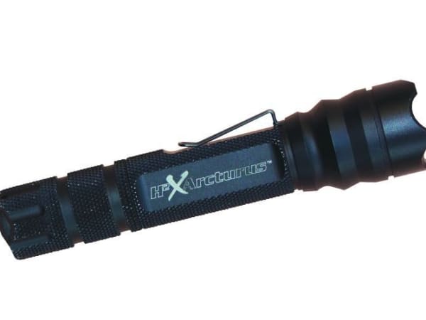Another example of a rechargeable duty light is Insight Tech-Gear's H2X Arcturus. Its Dura-Last LEDs produce a maximum output of 150 lumens controlled by a multi-function tail cap that gives you constant, bright, strobe, or S.O.S. light modes. Built tough, the Arcturus is waterproof to 15 feet and made with lightweight aerospace anodized aluminum. Runtime is approximately three hours on a full charge. The charge will last for a full 12-hour night shift. The Arcturus is easy to use with a handgun, no matter which light technique you choose. The flat of the light mates up well with the grip of various handguns using the Rogers method. This flat gives you a nearly perfect two-handed grip-something fully round flashlights can't claim.