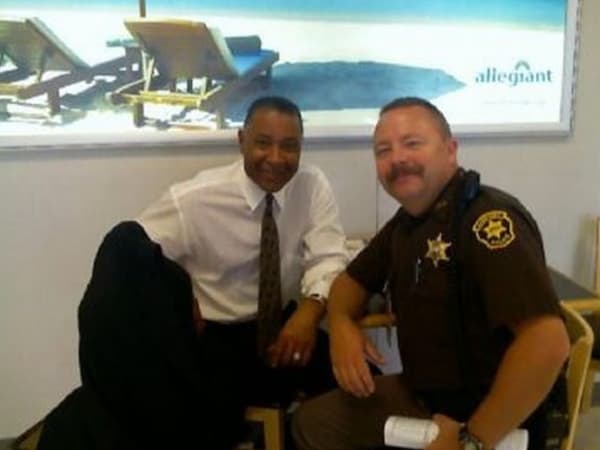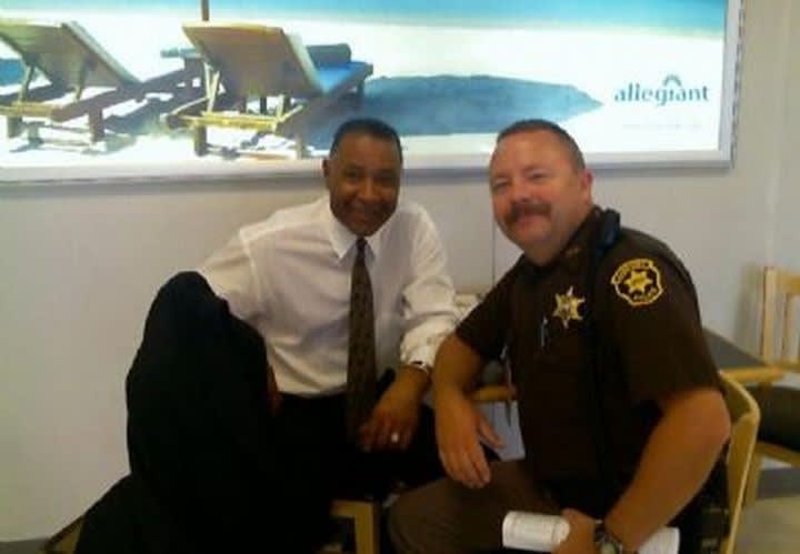 An unnamed deputy who identified himself only as "cowboy coot" poses for a photo with former MLB shortstop Ozzie "the Wizard" Smith.